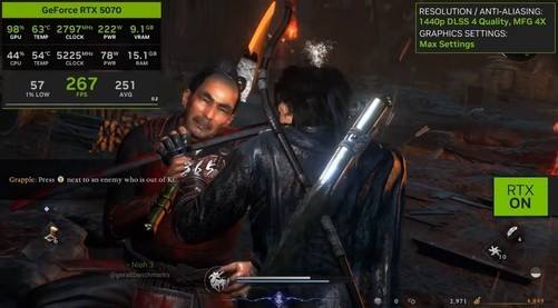 从实际游戏测试来看,畅玩《仁王3》RTX5070显卡是不错的选择,开启DLSS4之后,可以在2K、4K分辨率下,都能获得极佳的流畅游戏体验,画面和流畅度都兼顾了,而且RTX5070显卡在高端显卡中,又是性价比极高的一个型号。